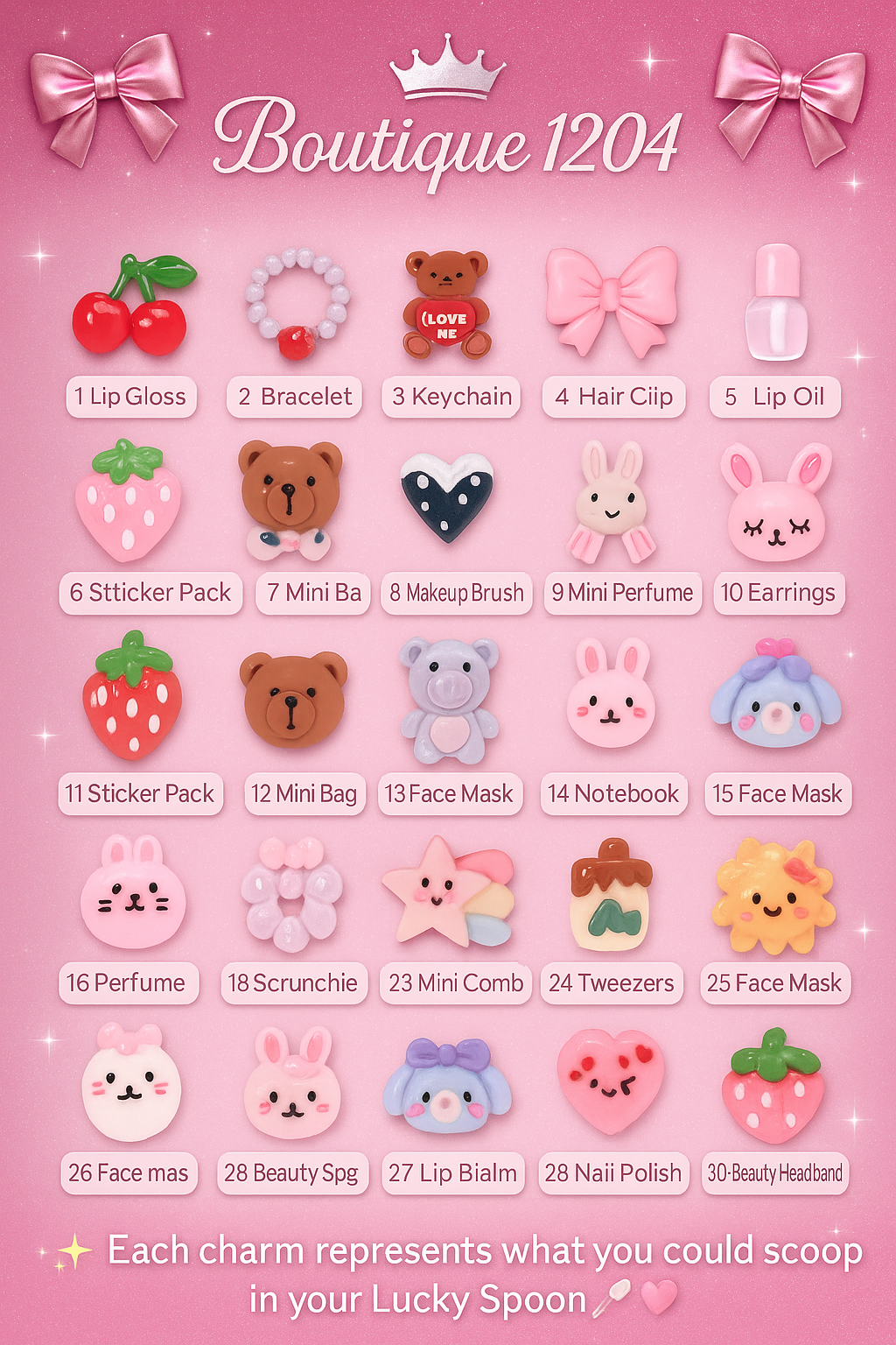 ย Every Lucky Spoon from Boutique 1204 is a glam surprise filled with girly, blingy, and boutique goodies โจ